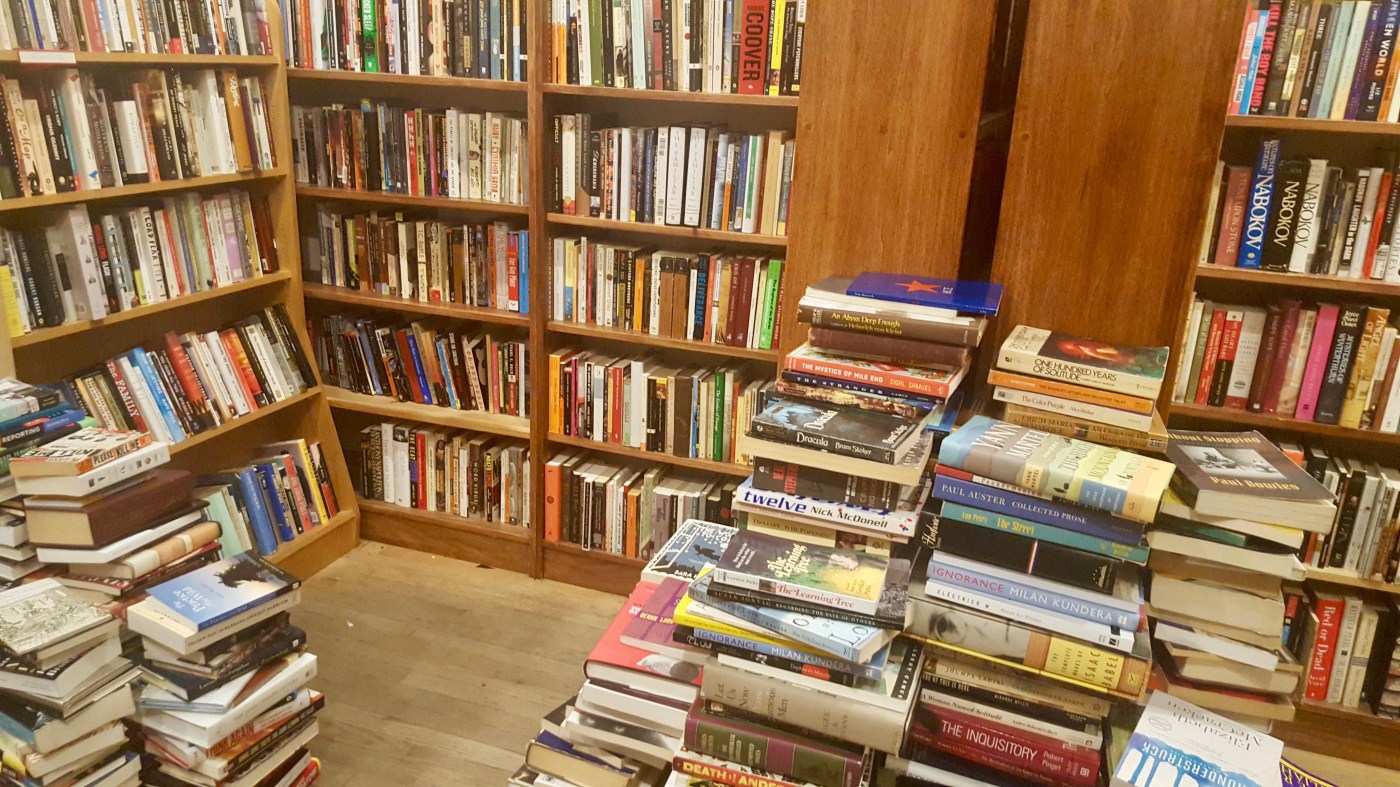 Unnameable Books is that kind of a bookstore where, if there is more than one reader inside the space, you cannot move anywhere inside without a couple of “excuse me”s. They don’t have a loyalty program, they don’t have a resident cat, they don’t attract millions of tourists, nor do they advertise how many miles of books they have. What they do have are piles of books on creaky wooden boards awash in tungsten light and a coffee shop next door.
