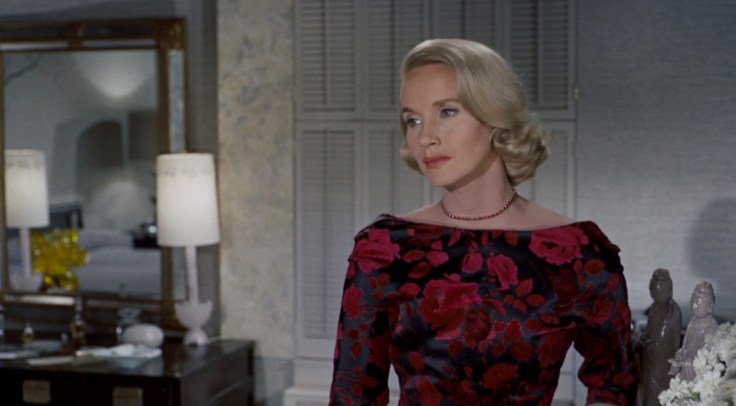After three movies I guage Hitchcock movies by the warmth of the leading lady. Eva Marie Saint is the warmest. She practically is a furnace compared to Grace Kelley in Rear Window, or Kim Novak in Vertigo. Eve Kendall is by far the most fun and wittiest of the three blondes too.
