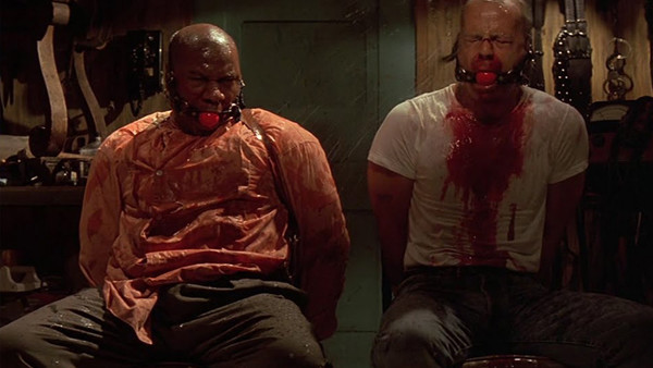 That pawn shop rape scene? Brutal – not for the faint-hearted. Butch Coolidge and Marsellus Wallace end up captured by a pair of sadistic pawnbrokers in a twisted, subterranean nightmare. Locked in a basement, they face a harrowing ordeal involving a gimp, a leather-clad figure, and the threat of unspeakable violence. This dark, gritty sequence is a standout in the film, blending Tarantino’s signature tension, dark humor, and unpredictable storytelling.
