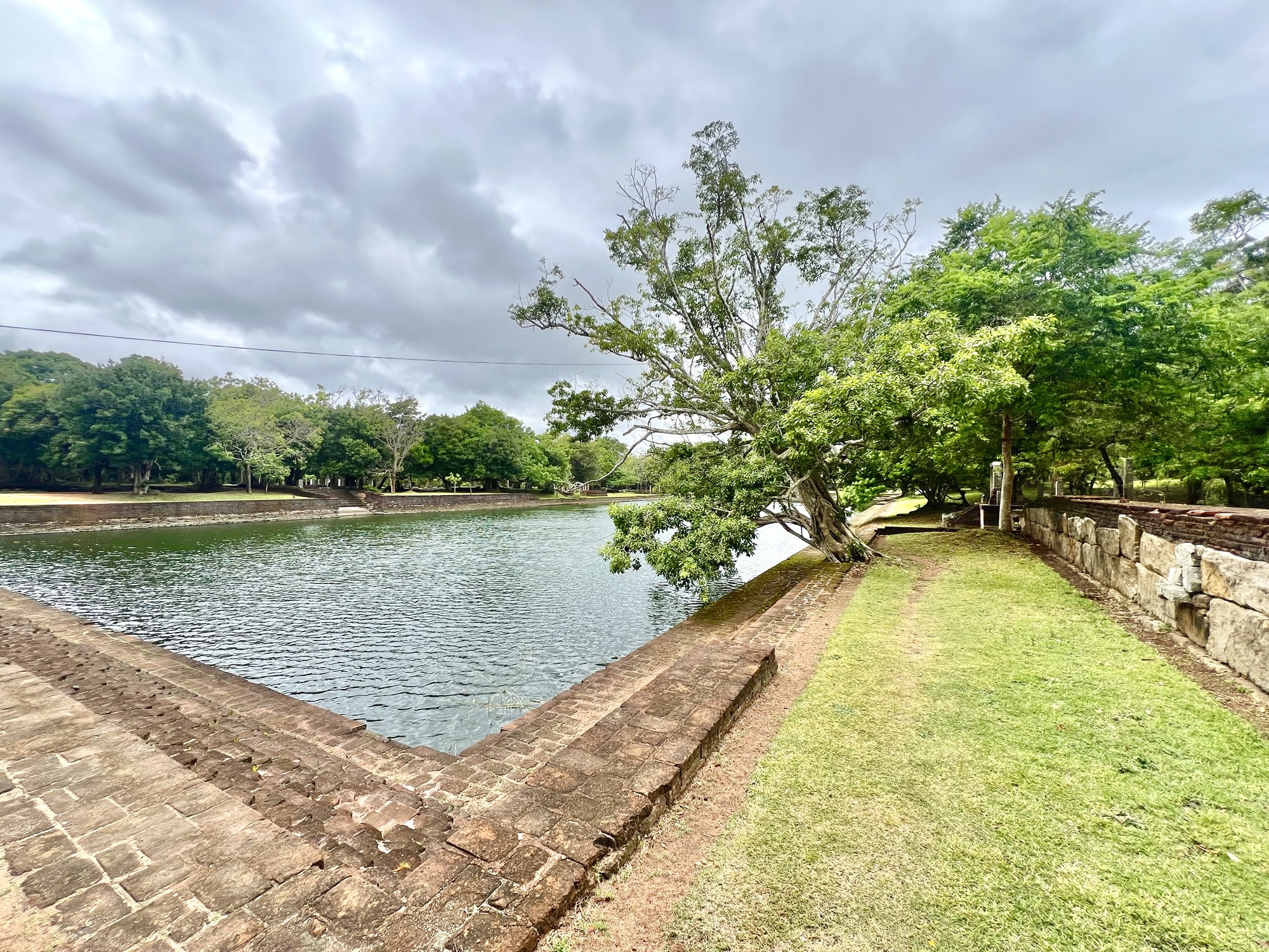 At the city’s northern edge lies Abhayagiri Vihara, a sprawling monastery founded around 2 BCE. Once a cultural and political hub, its ruins stretch across the landscape, whispering of a millennium of influence. In the afternoon, Mira and I wandered to the nearby elephant pond, where a lone monitor lizard glided through the water. We chased it along the pool’s edge, but each time we drew near, it dove, resurfacing elsewhere, outwitting us with ease.